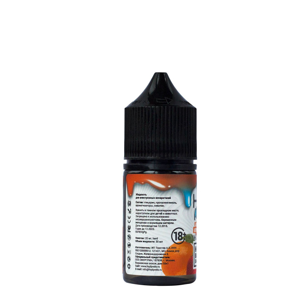 Жидкость HQD MIX IT Апельсин Клубника Жвачка - это уникальная солевая жидкость, разработанная специально для использования в электронных сигаретах. Она отличается от обычных жидкостей для заправки электронных сигарет своим составом, включающим солевой никотин. Благодаря этому, никотин быстрее всасывается в организм, обеспечивая более гладкое и эффективное удовлетворение потребности в никотине.